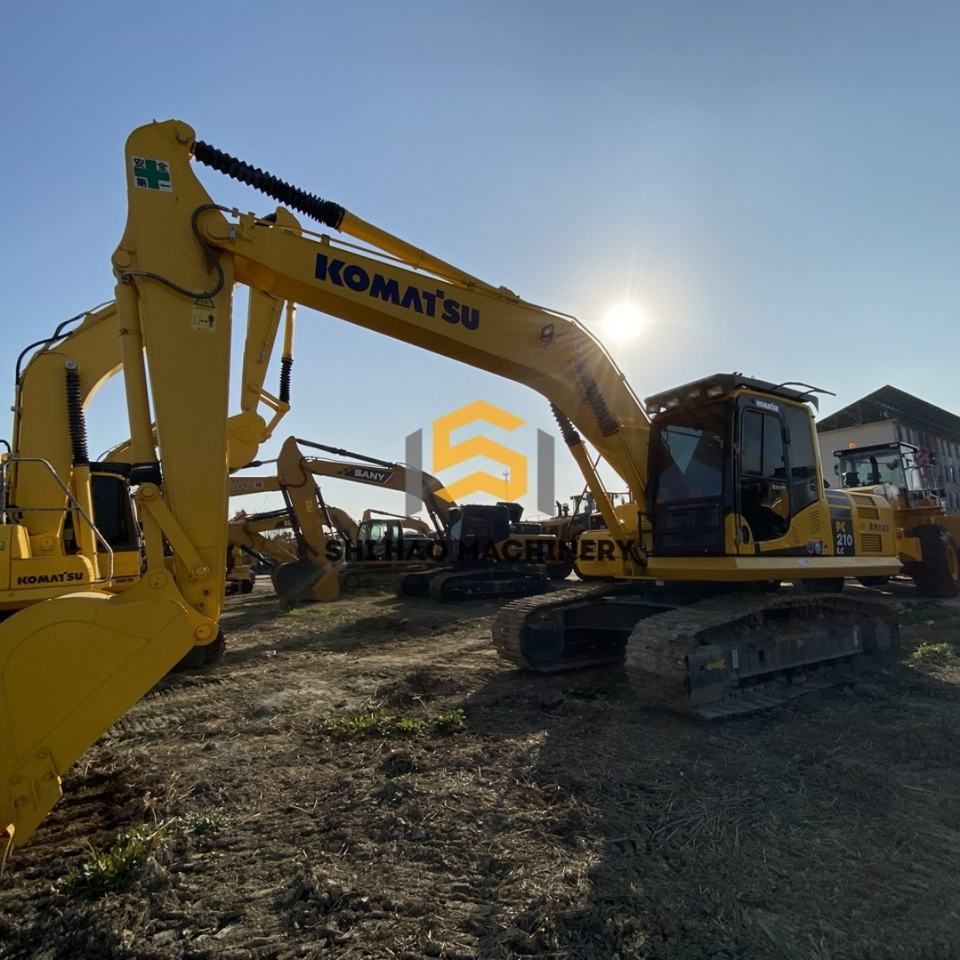 รถขุดไฮดรอลิกแบบตีนตะขาบ Komatsu PC210 มือสอง ขนาด 21 ตัน พร้อมหัวเจาะดิน ความจุบุ้งกี๋ 1.2 เมตร พร้อมเครื่องยนต์ เกียร์ และมอเตอร์