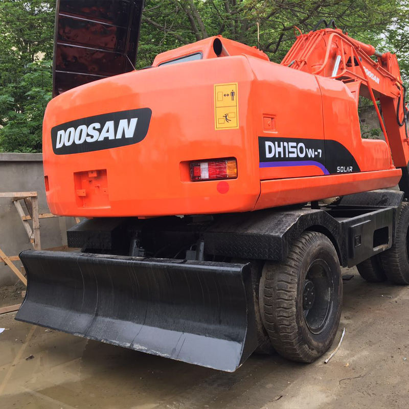 Doosan รถขุด15Ton มือสองจากเกาหลีรถขุดล้อ Dh150W พร้อมถังสำหรับขุด