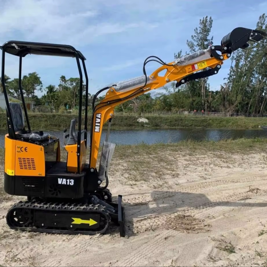 ใช้เครื่องยนต์ MIVA VA13 EPA CE ขนาด 1.2 ตัน 13.5 แรงม้า รถขุดขนาดเล็ก กระบอกไฮดรอลิก Eaton มอเตอร์ปั๊มเกียร์บ็อกซ์เกียร์ PLC