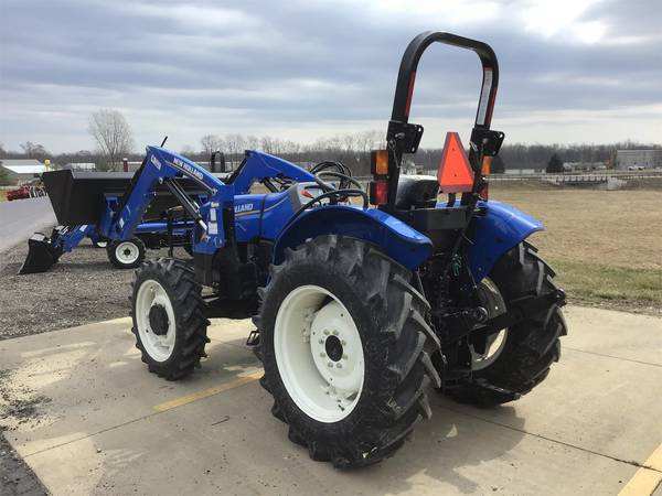 รถแทรกเตอร์ล้อ New Holland มือสอง 55 แรงม้า พร้อมเครื่องยนต์ FPT เกียร์ ปั๊ม แบริ่ง และมอเตอร์ สำหรับใช้งานในฟาร์มขนาดเล็ก