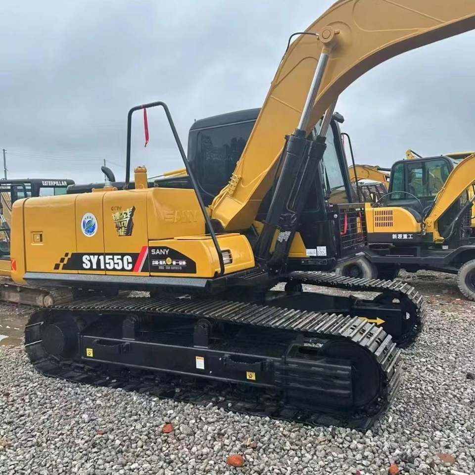 รถขุดตีนตะขาบ SANY SY155C มือสอง ได้รับการรับรองมาตรฐาน CE พร้อมเครื่องยนต์ Kama เกียร์และมอเตอร์ น้ำหนัก 15.5 ตัน อุปกรณ์ก่อสร้าง