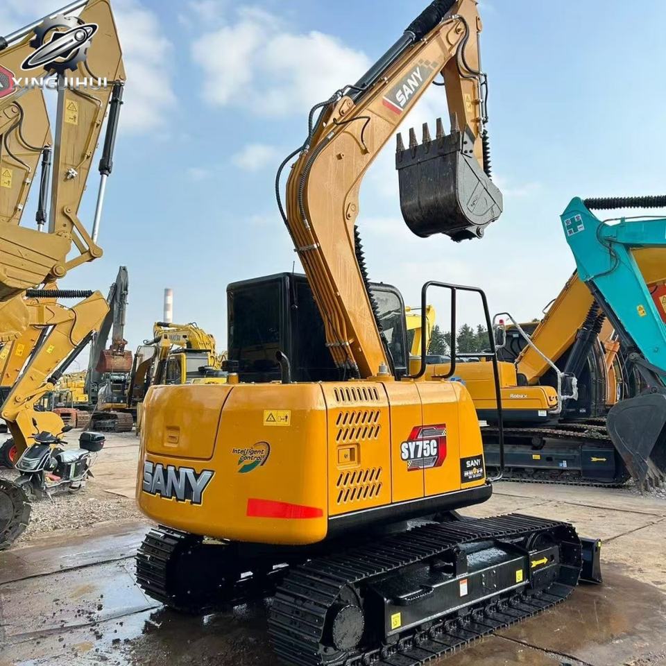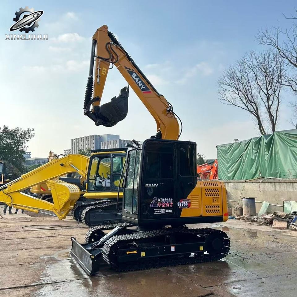 รถขุดตีนตะขาบ Sany75C มือสอง 7.5 ตัน บุ้งกี๋ 0.3 ลบ.ม. แบรนด์จีนแท้ รถขุดขนาดเล็กสำหรับงานก่อสร้าง ชั่วโมงการทำงานต่ำ สภาพดี