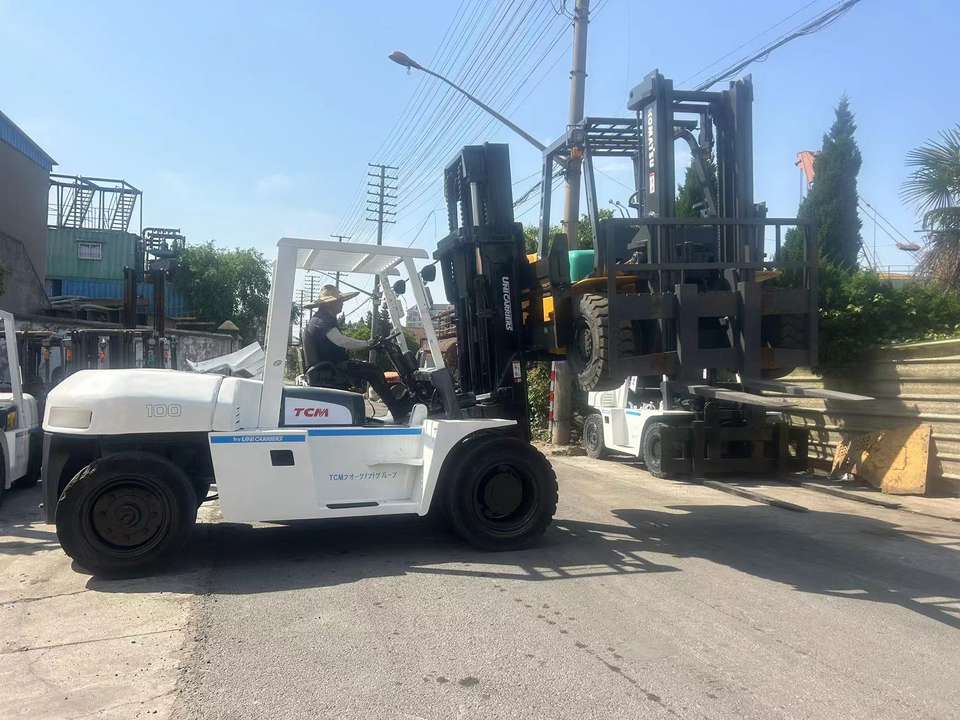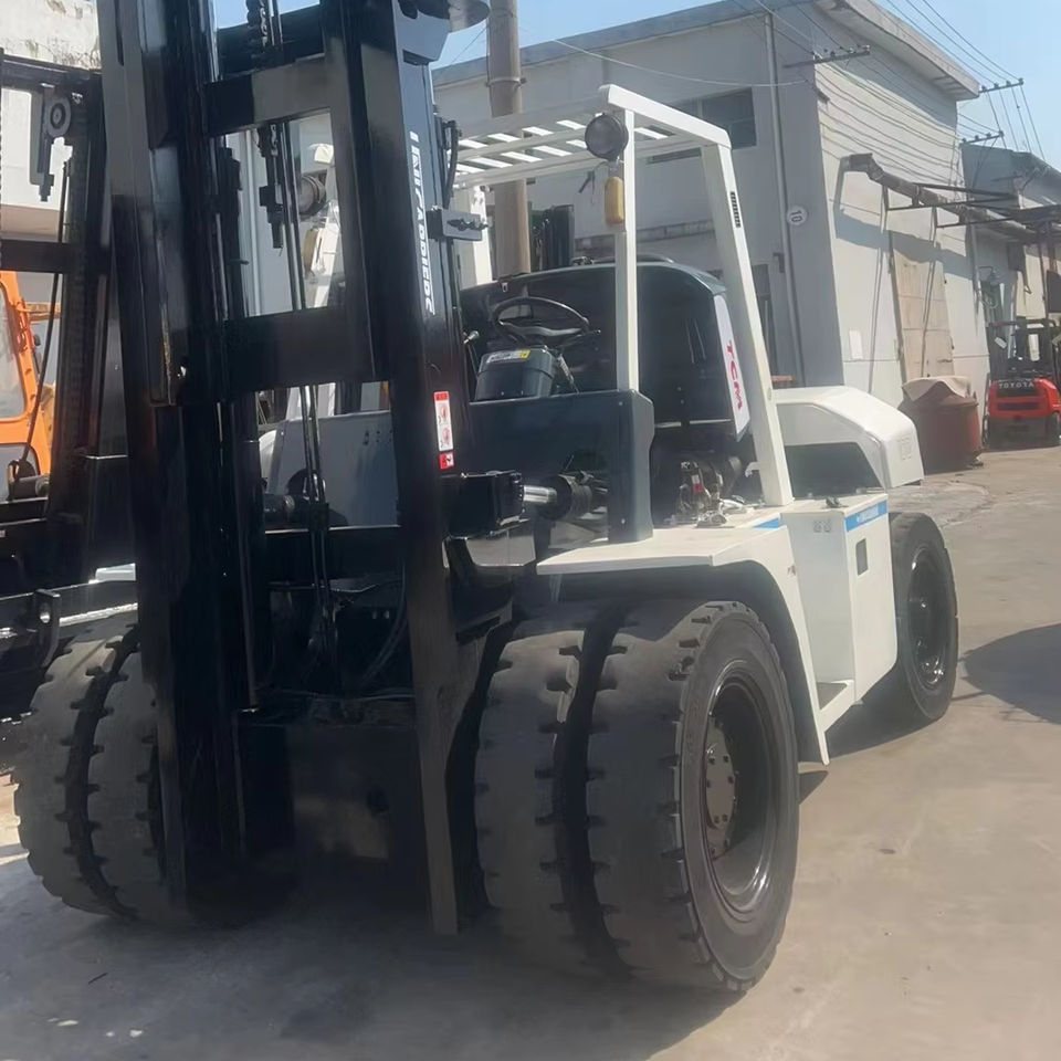 รถยกไฮดรอลิกดีเซล TCM FD100 มือสอง ขนาด 10-20 ตัน ยางตันสำหรับงานออฟโรด เสากระโดงสองตอน ยกสูง 3 เมตร ขายดี