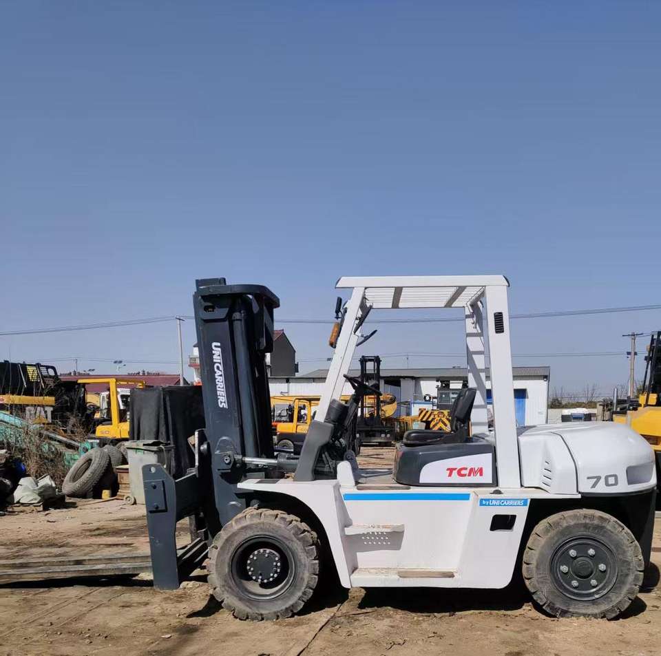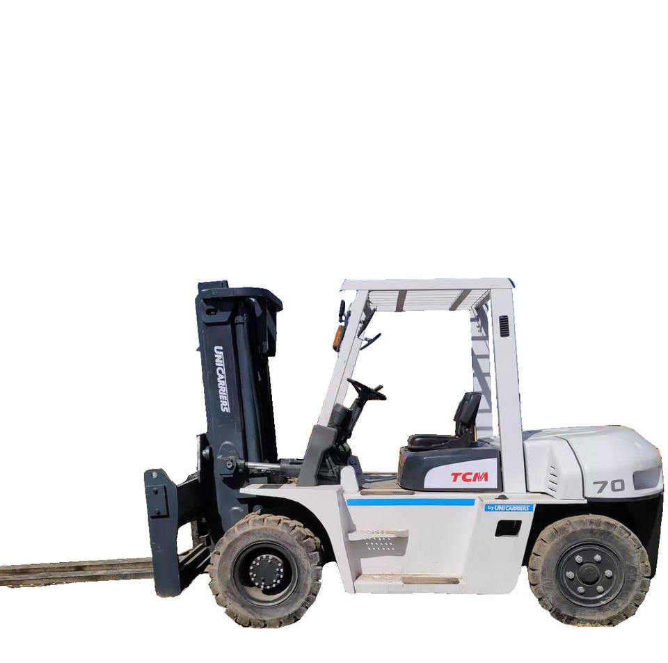 รถยกดีเซล TCM FD70 มือสอง 3-10 ตัน พร้อมไฮดรอลิกไซด์ชิฟเตอร์ ยางตัน เสากระโดงสองตอน