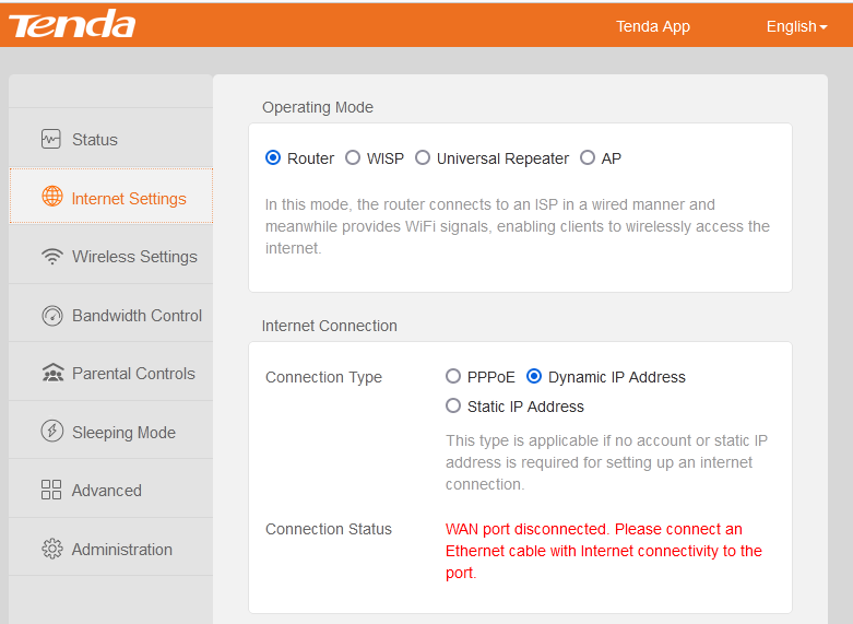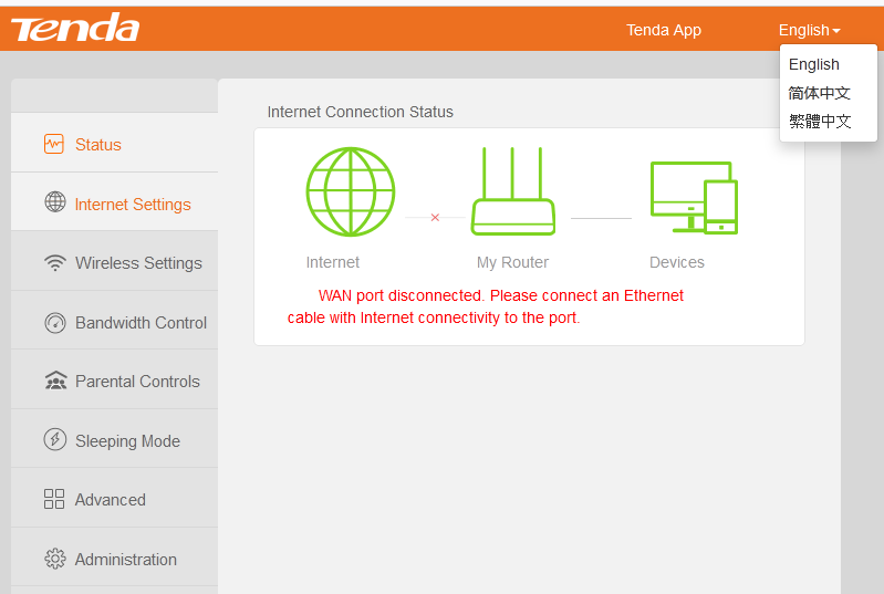 เราเตอร์ไร้สาย Tenda AC6 2.4G&5G AC1200M WiSP ใช้เฟิร์มแวร์ภาษาอังกฤษ