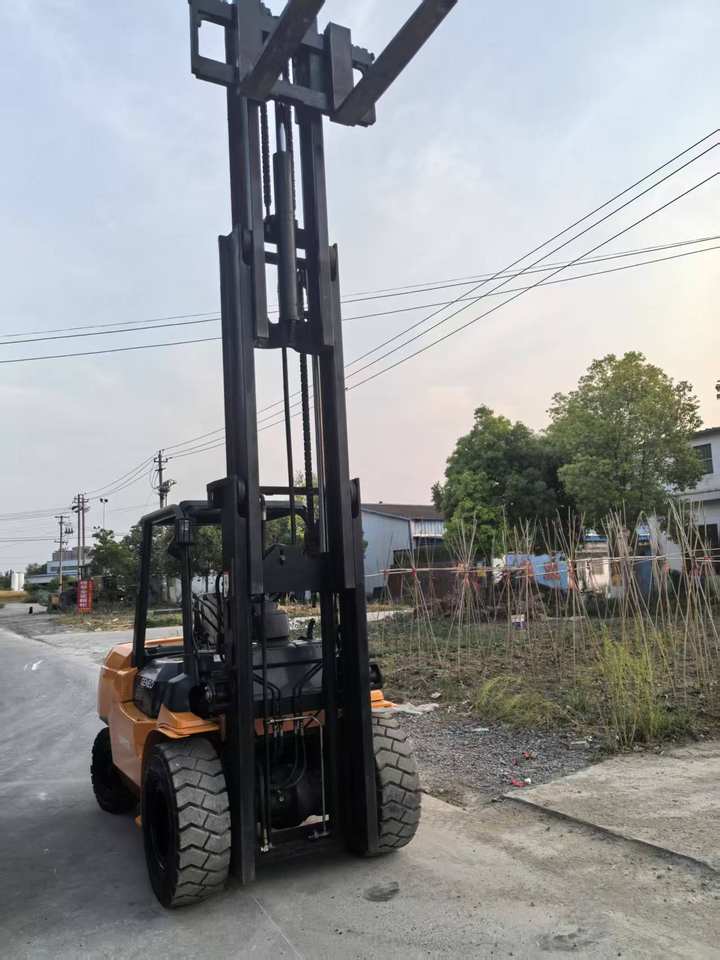ใช้รถยก7FD ของโตโยต้า5ตัน3ขั้นเครื่องยนต์ดีเซลเสาต่ำ4500มม. ยกสูงได้รับการบำรุงรักษาอย่างดีพร้อมทำงาน
