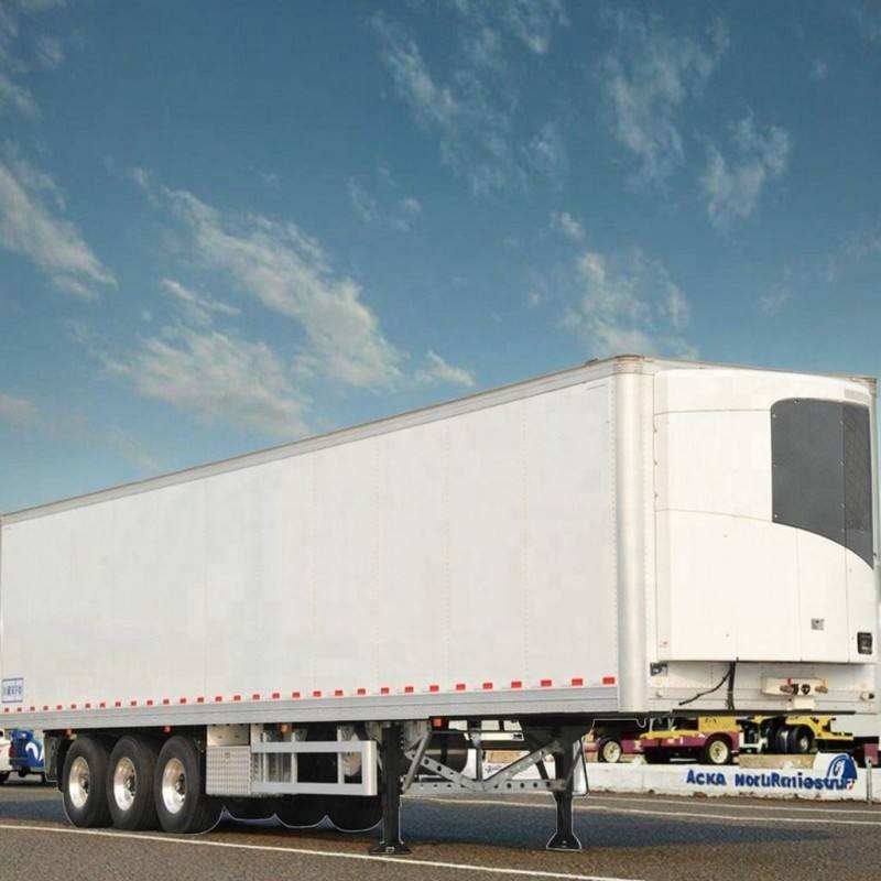 รถพ่วงกึ่งพ่วงแบบแช่แข็ง 3 เพลา สีขาว มือสอง รับน้ำหนักได้ 20-25 ตัน สำหรับใช้งานอเนกประสงค์ พร้อมตู้แช่แข็งแบบกำหนดเองสำหรับเก็บอาหารและจัดส่งแบบควบคุมอุณหภูมิ