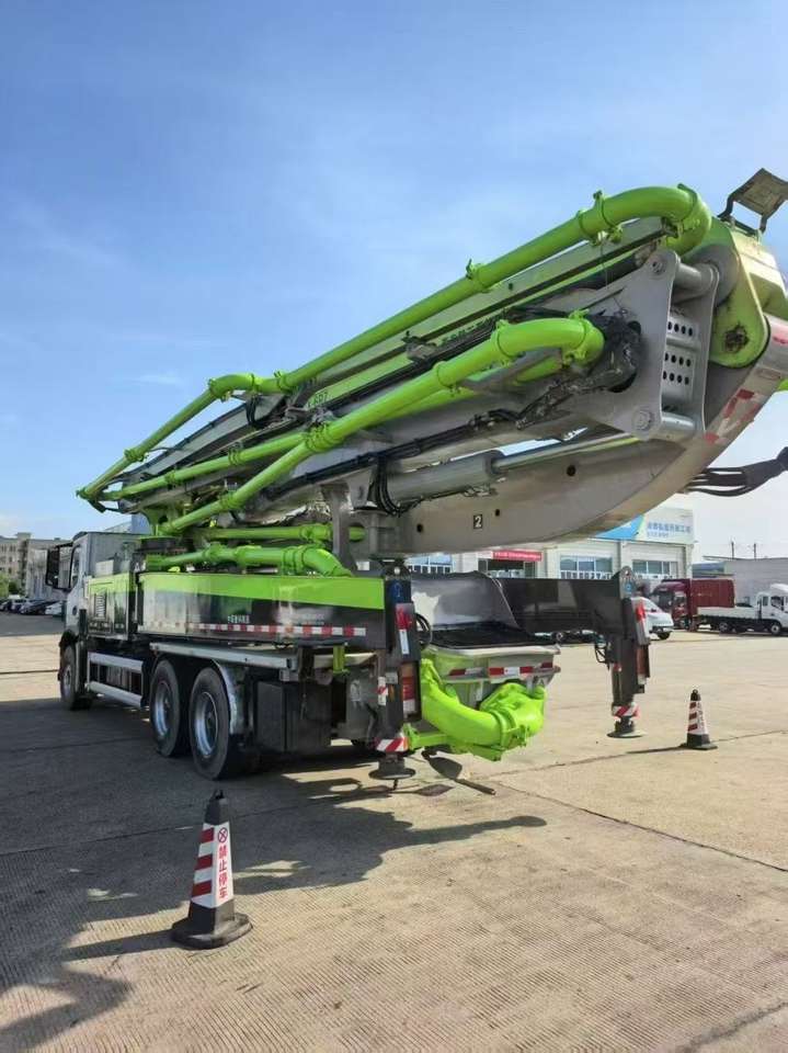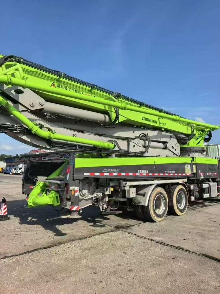 รถปั๊มคอนกรีตติดตั้งบนรถบรรทุกยี่ห้อ Zoomlion เครื่องยนต์ดีเซลและมอเตอร์ ระยะส่งคอนกรีตในแนวตั้ง 51.1 เมตร ผลผลิต 170 เมตร/ชม.