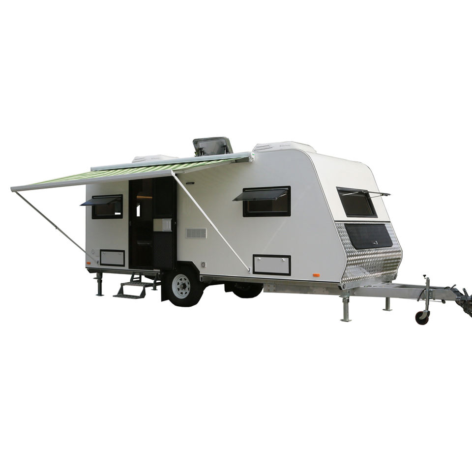 Used in China: Family Travel Trailer for Semi-Off Road Camping Made in Fiberglass Material and with Shower Room