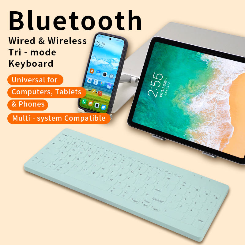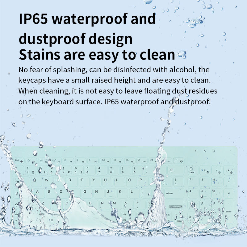 คีย์บอร์ดซิลิโคนแบบไร้สายกันน้ำสามโหมดสำหรับโรงพยาบาล ใช้ได้ทั้งแบบใหม่และแบบมือสอง มาตรฐาน IP68 สำหรับอุตสาหกรรมและการแพทย์