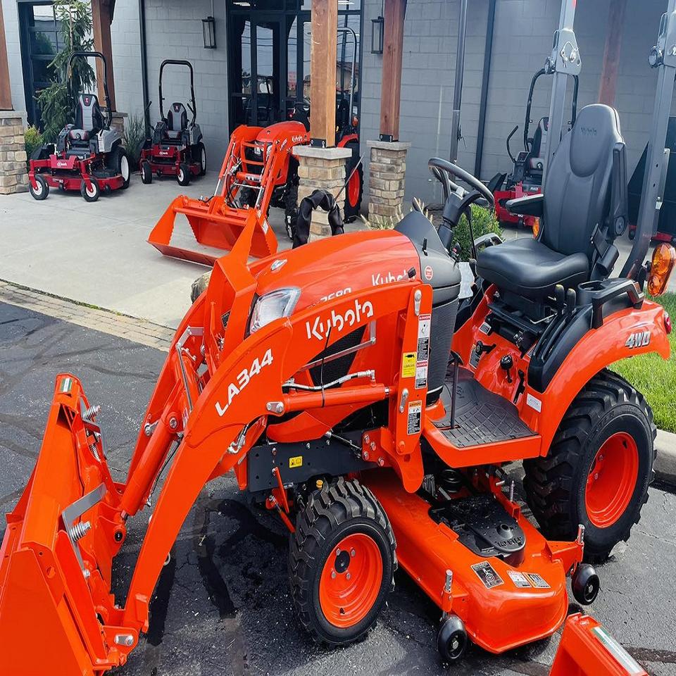 รถแทรกเตอร์ล้อยาง Kubota BX2680 รุ่นปี 2025 มือสอง พร้อมเครื่องตัดหญ้าและที่ตักด้านหน้า เครื่องยนต์ 25/30/50 แรงม้า และชิ้นส่วนหลักของระบบเกียร์