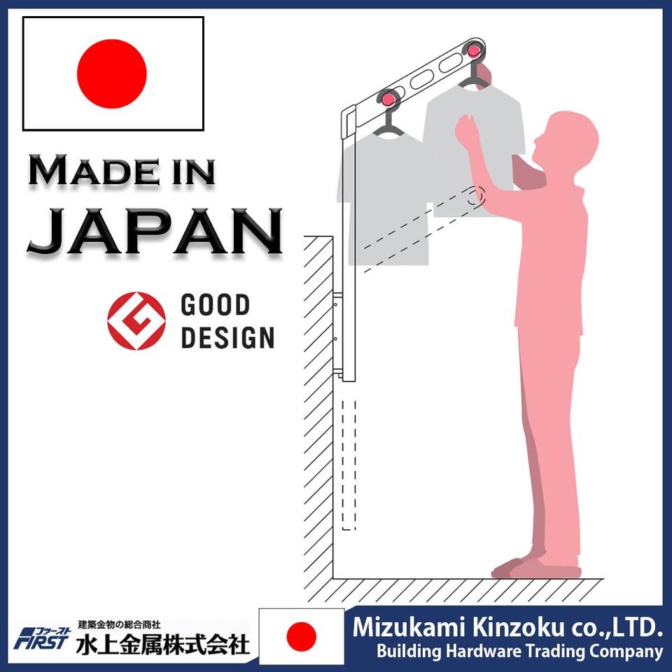 ราวตากผ้ากลางแจ้งที่มีประโยชน์สำหรับระเบียงพร้อมฟังก์ชั่นปรับความสูงพร้อมแขนยืดหดได้ผลิตในญี่ปุ่น