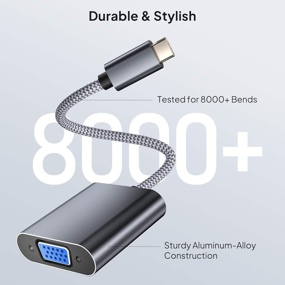 ตัวแปลงสายข้อมูลวิดีโอ USB-C3.1กับ VGA ที่ใช้งานง่ายเข้ากันได้กับ Chromebook สำหรับ Apple iPhone 16 15 Max PLUS