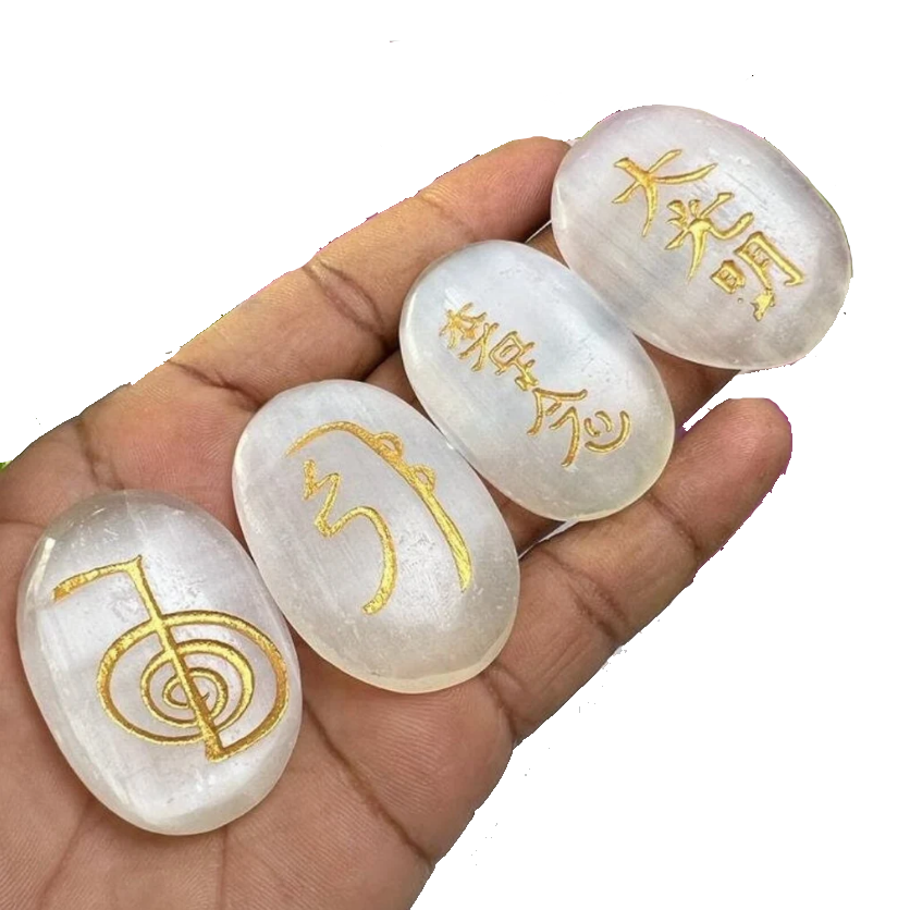 Usui คริสตัลเซเลไนต์ reiki ชุดสัญลักษณ์ Usui reiki ชุดสัญลักษณ์หินธรรมชาติรักษาอัญมณีคริสตัล