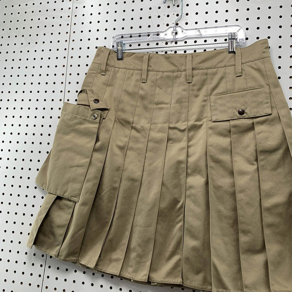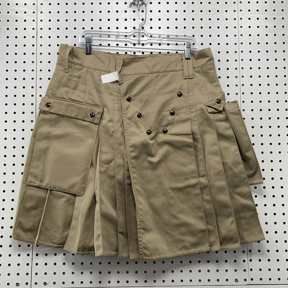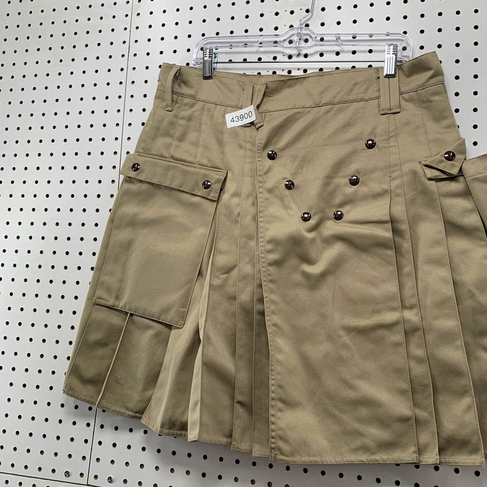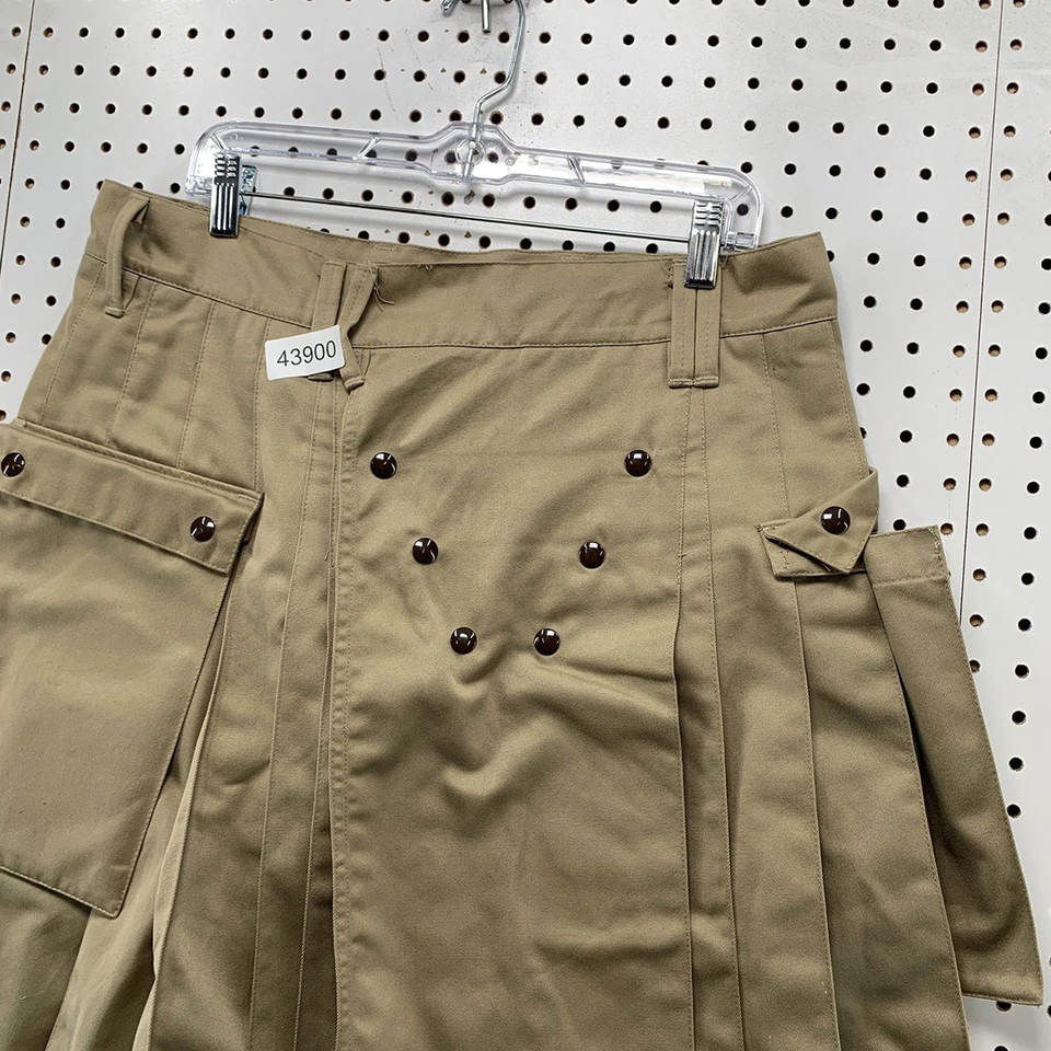 ยูทิลิตี้คิลท์ส กางเกงคิลท์สีกากี ไซส์ผู้ชาย 36 กระเป๋า กระดุมแป๊กหนา จีบแบบโกธิค หนักแน่นพิเศษ รุ่น 2026