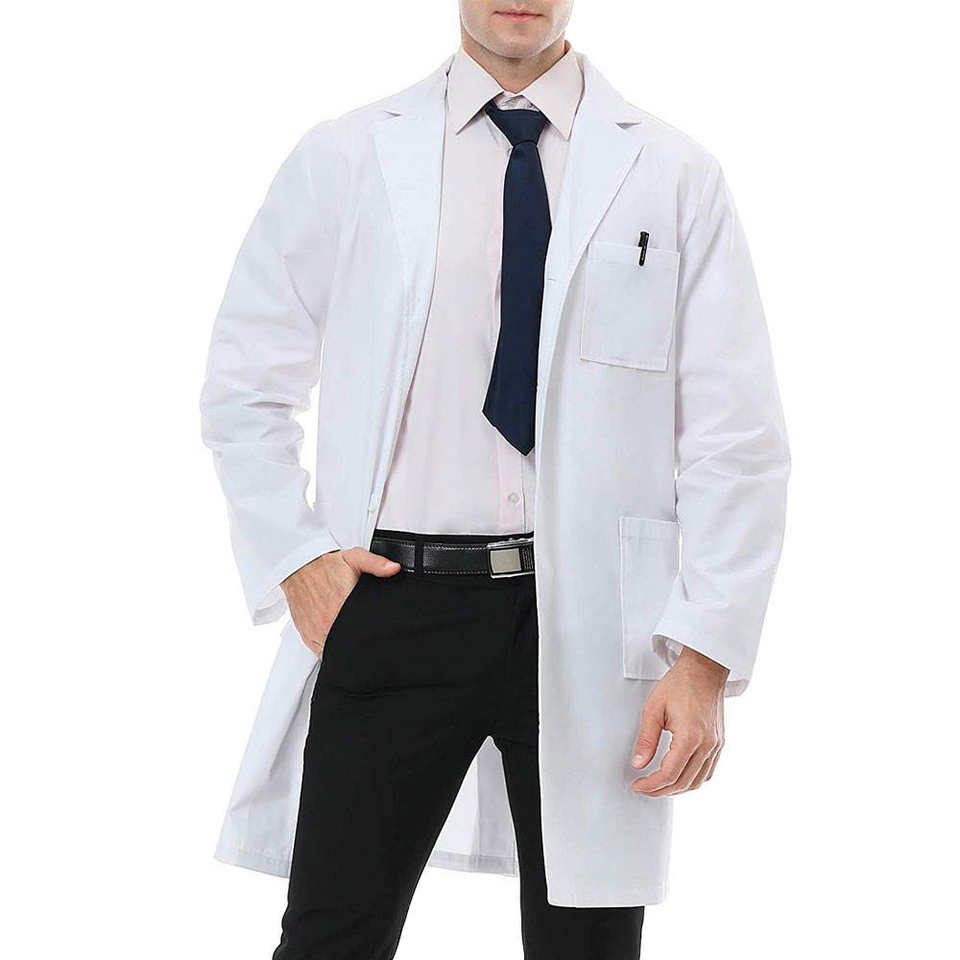 เสื้อกาวน์แพทย์แบบยูนิเซ็กซ์ สีขาว ผ้าโพลีเอสเตอร์/คอตตอน ป้องกันการหดตัว ใช้ในโรงพยาบาล