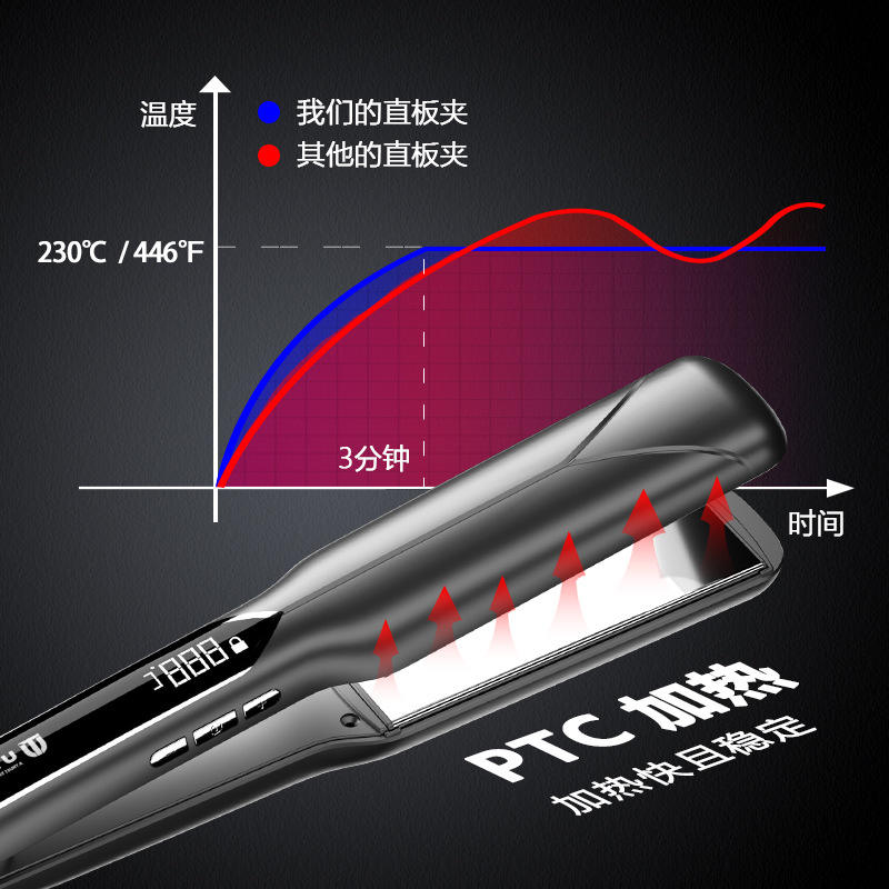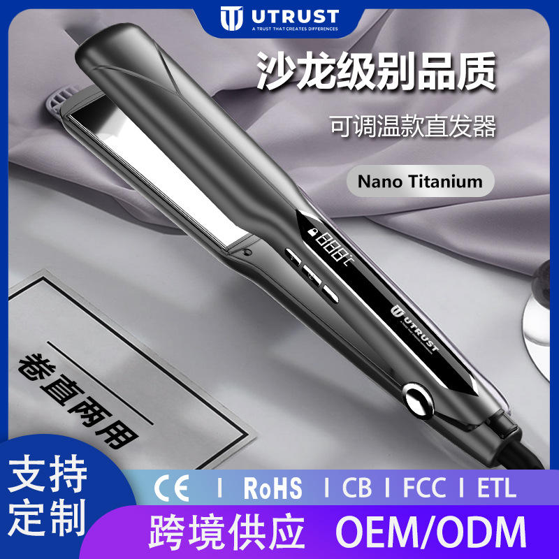 ยูทรัสต์เครื่องหนีบผมแผ่นเซรามิกไทเทเนียมแบบกว้าง จอแสดงผลดิจิตอล LED ควบคุมอุณหภูมิได้ 9 ระดับสำหรับผมแห้ง