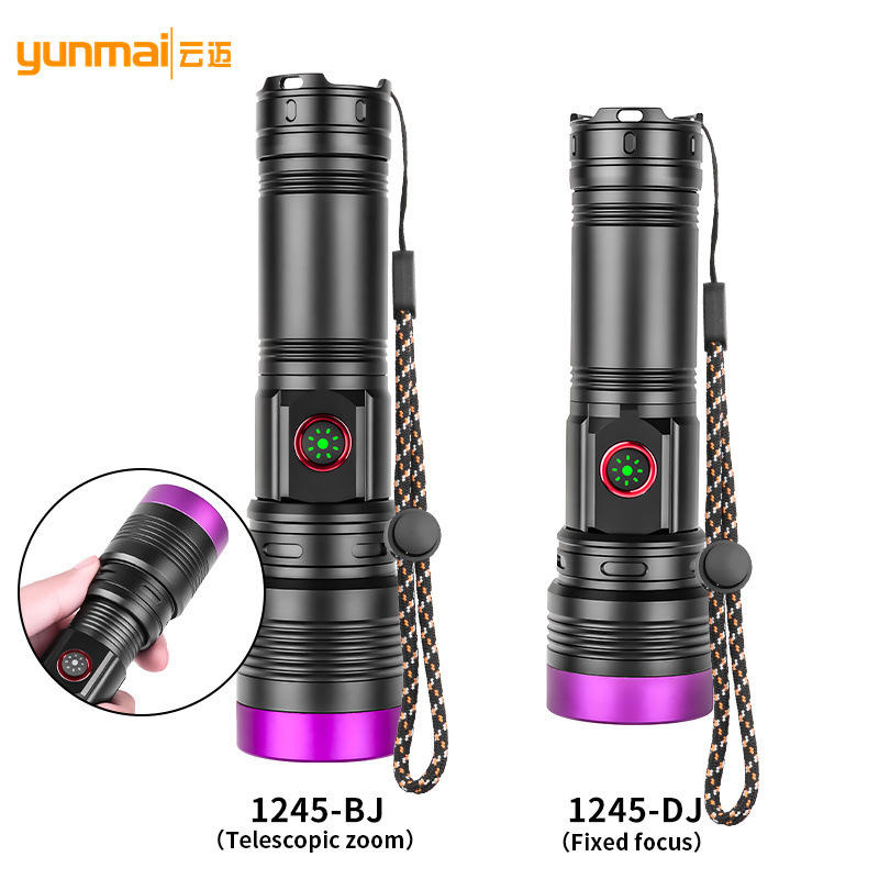 ไฟฉายยูวี 365 นาโนเมตร แบล็คไลท์ ชาร์จซ้ำได้ ปรับซูมได้ แสงสีม่วง ใช้งานได้นาน 3-4 ชั่วโมง ตรวจจับตรวจสอบ ใช้แบตเตอรี่ 18650