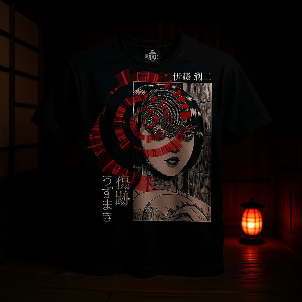 เสื้อยืดผู้ใหญ่ลาย Uzumaki Spiral Blur สีดำ ลิขสิทธิ์แท้ ทรงปกติ ลำลอง คอกลม แขนสั้น ผ้าเจอร์ซีย์พิมพ์ลาย ผ้าฝ้าย