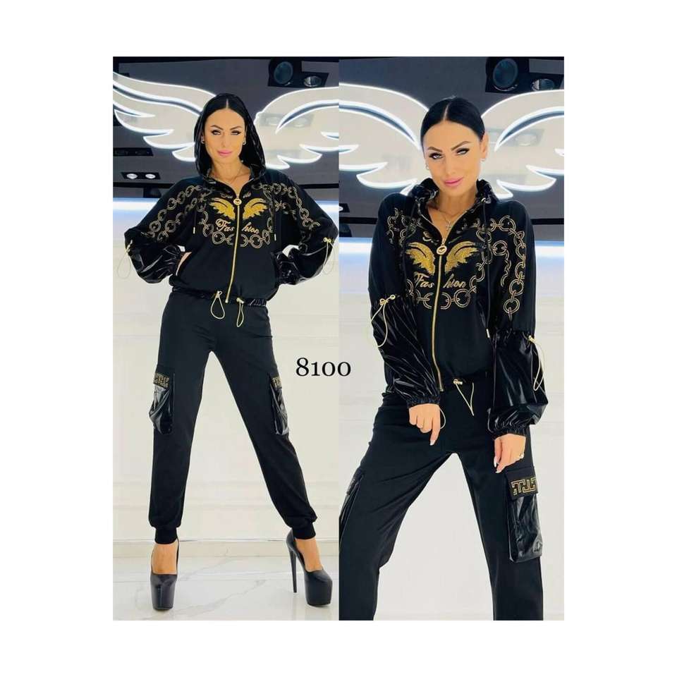 Uzunkol Wing Pattern Crystal Stone Tracksuit - Black Gold