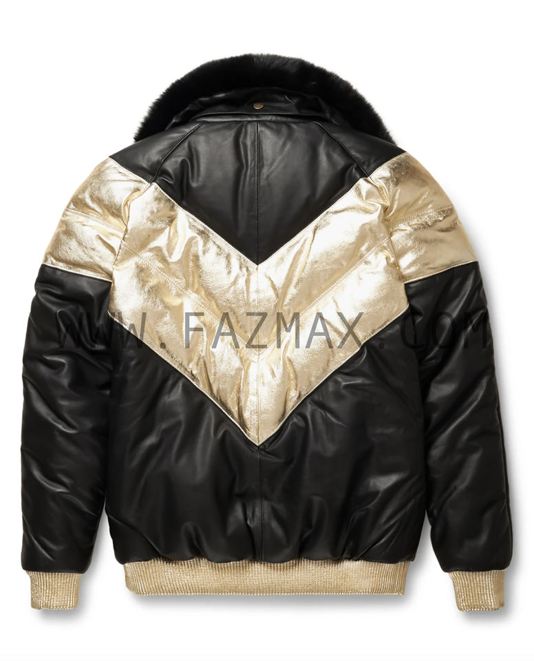 เสื้อแจ็คเก็ตหนัง V-Bomber เสื้อแจ็คเก็ตหนังวัวหนังดําและสีทอง OEM 2024