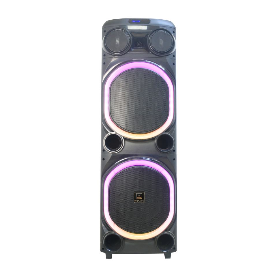 ลำโพงวูฟเฟอร์คู่ขนาด 12 นิ้ว พร้อมไฟดิสโก้ สำหรับงานเทศกาล แคมป์ปิ้ง เสียงดังในลำโพงพกพาสำหรับงานปาร์ตี้