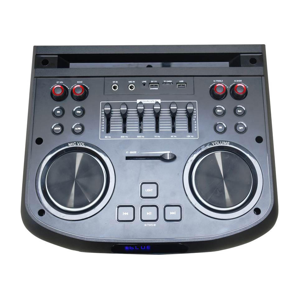 อินพุตและเอาต์พุตเสียง:บลูทูธ, FM, USB*2, TF Card, AUX in, ช่องเสียบไมค์, ช่องเสียบกีตาร์