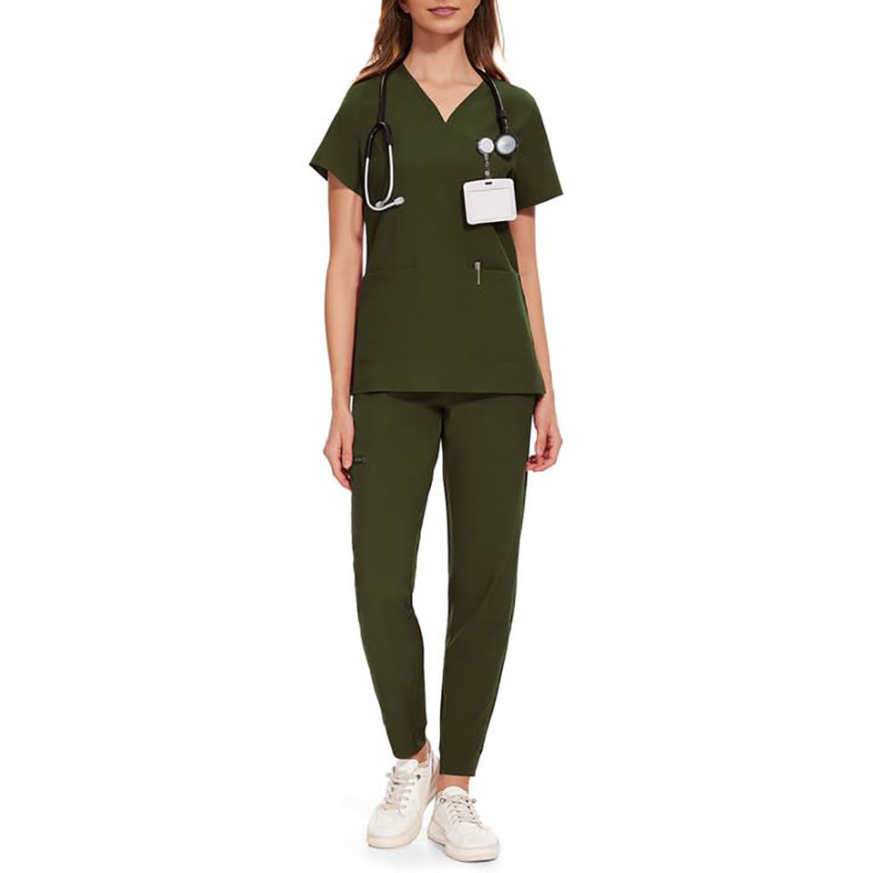 ชุดเครื่องแบบขัดตัวทางการแพทย์คอวีสำหรับโรงพยาบาลชุดขัดผิวแบบกำหนดเองแขนสั้น