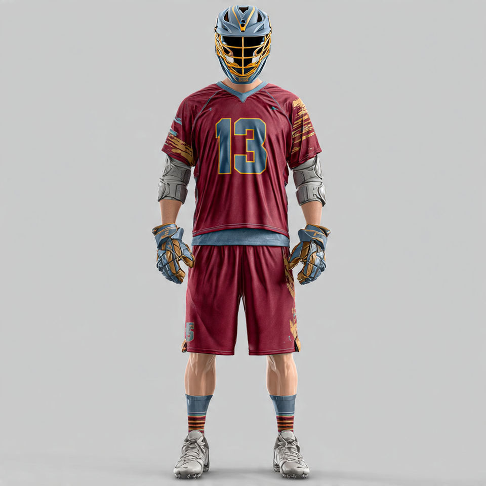 ชุดลาครอสคอวี ชื่อทีมพิมพ์บนเสื้อ ชุดลาครอสคุณภาพสูง เสื้อเจอร์ซีย์ลาครอส กางเกงขาสั้น