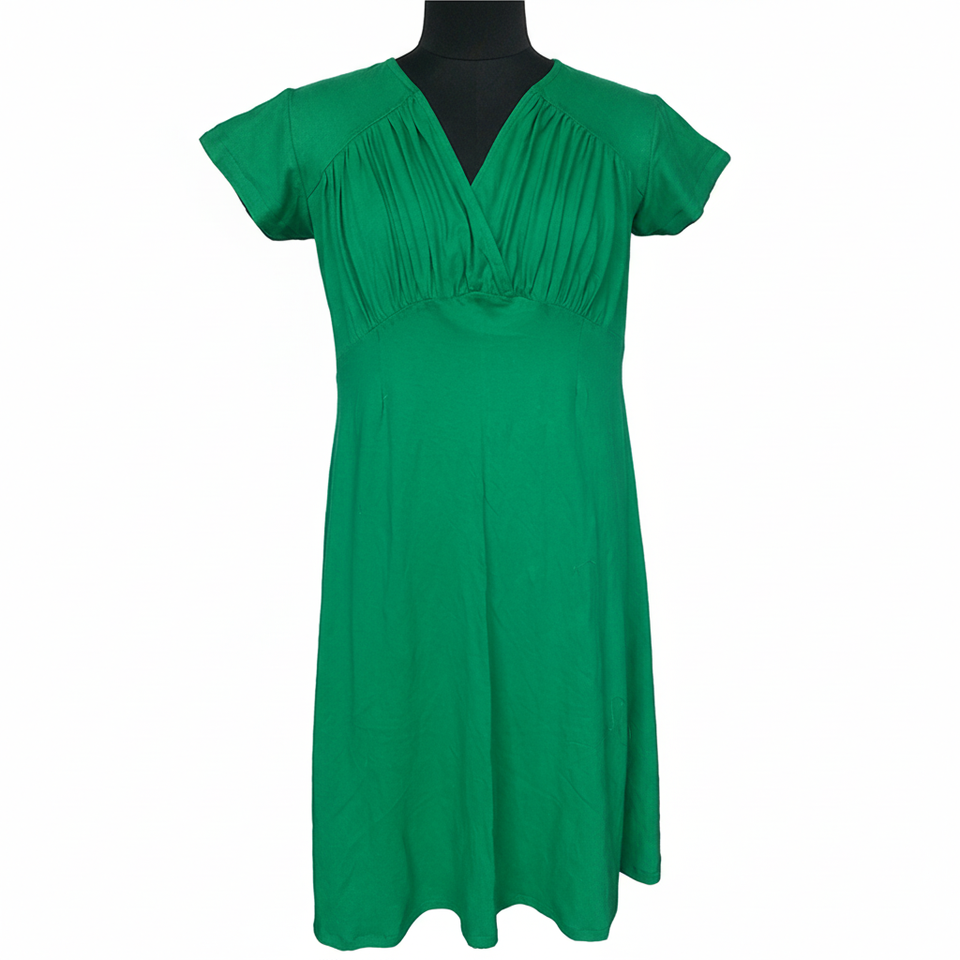 V Neck Maternity Dress With Half Sleeves Pleated Bust Organic Spandex Cotton Bamboo Fabric for Work Occasions Order Model Number
