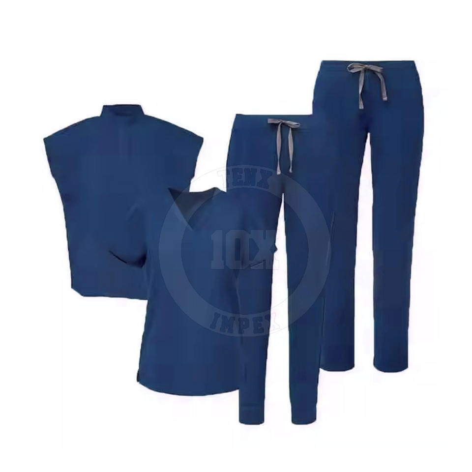 ชุดสูททางการแพทย์คอวีพร้อมกางเกงเอวยางยืดทรงหลวมสำหรับใส่ทำงานในทุกฤดูกาล