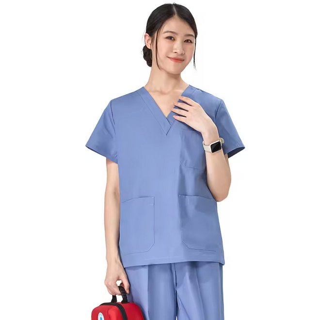 ชุดสครับคอวีแบบปกติชุดเครื่องแบบโรงพยาบาลทำจากวัสดุยืดได้พร้อมโลโก้ตามสั่ง