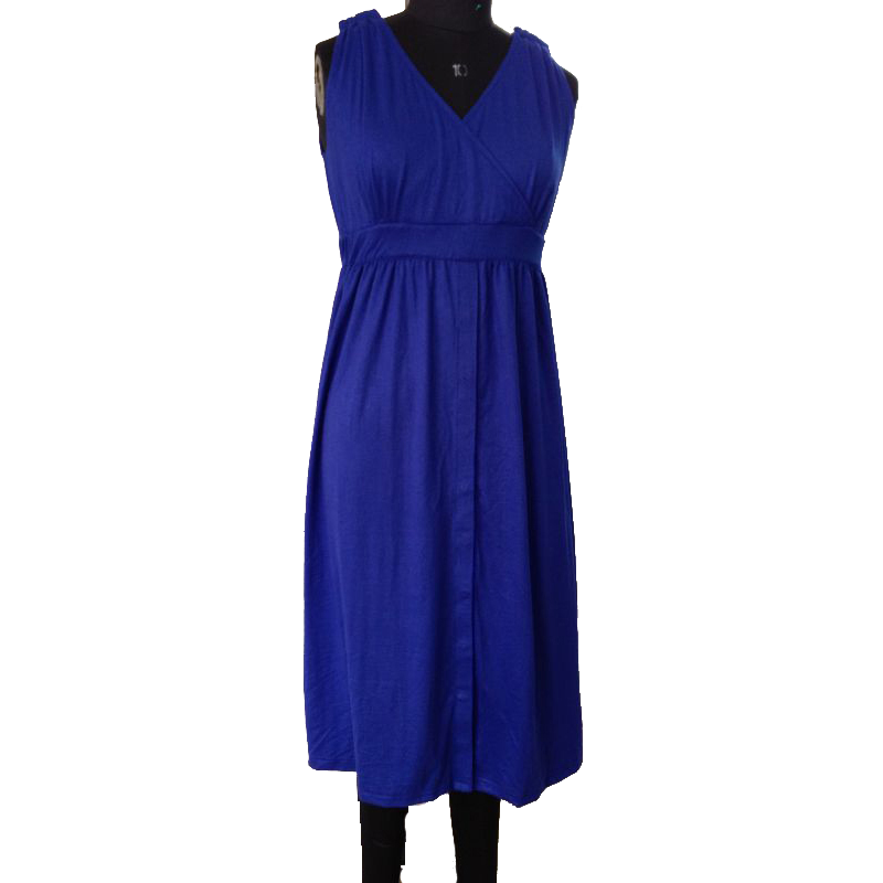 ชุดคลุมท้องคอวีแขนกุดลายดอกไม้ทำจากไม้ไผ่ผ้าฝ้ายยาวถึงเข่าสำหรับหญิงตั้งครรภ์สีฟ้าสดใสเป็นมิตรกับสิ่งแวดล้อม