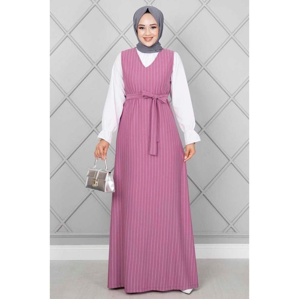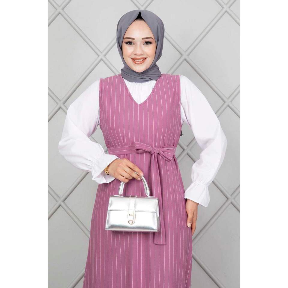 ชุดเสื้อกั๊กฮิญาบคอวีลายดอกกุหลาบ