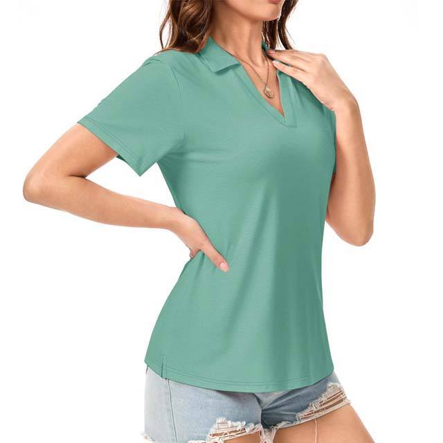 เสื้อโปโลคอวีสำหรับผู้หญิง ผ้าฝ้ายผสมโพลีเอสเตอร์ รับผลิตแบบ OEM ODM บริการออกแบบตามสั่ง มีจำหน่าย