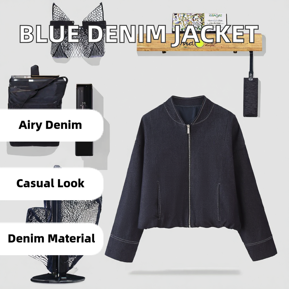แจ็กเก็ตยีนส์แฟชั่นวินเทจระบายอากาศได้ดีสำหรับผู้หญิงเสื้อแจ็คเก็ตแขนยาวคอวีแบบลำลองสีฟ้าสำหรับฤดูร้อน