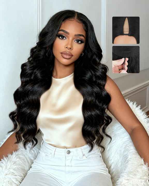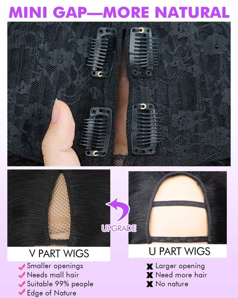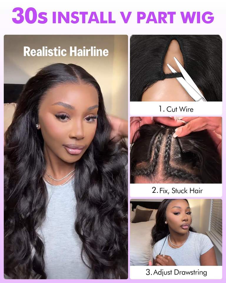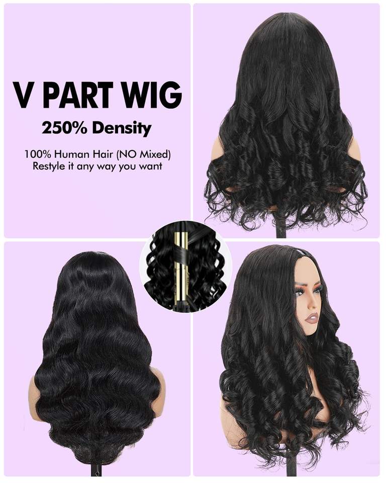 V Part Wigs Human Hair 250% Density Body Wave Upgrade U Part Human Hair Wigs with Drawstring No Sew Glueless Clip in Half Wig