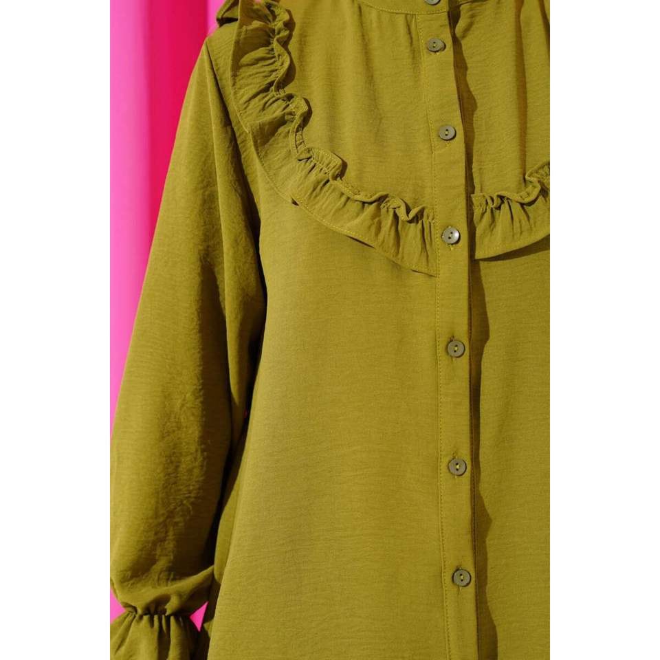 เสื้อคอวีสีเขียวสีน้ำมัน