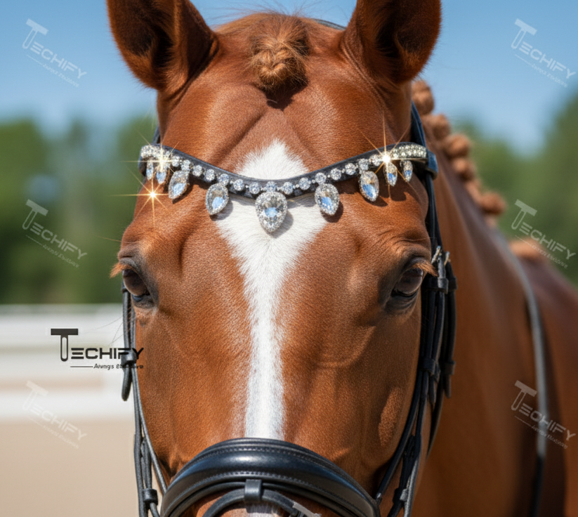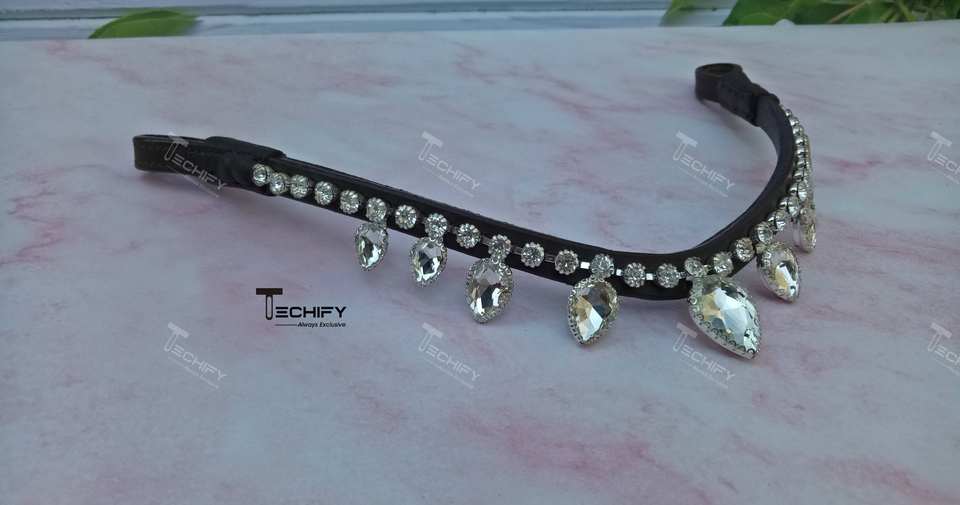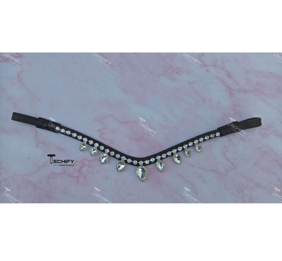 สายคาดหน้าผากม้าแบบคริสตัลใสรูปตัววี | สายคาดหน้าผากม้าหนังแท้ทำมือ | อุปกรณ์เสริมสำหรับขี่ม้าที่หรูหรา
