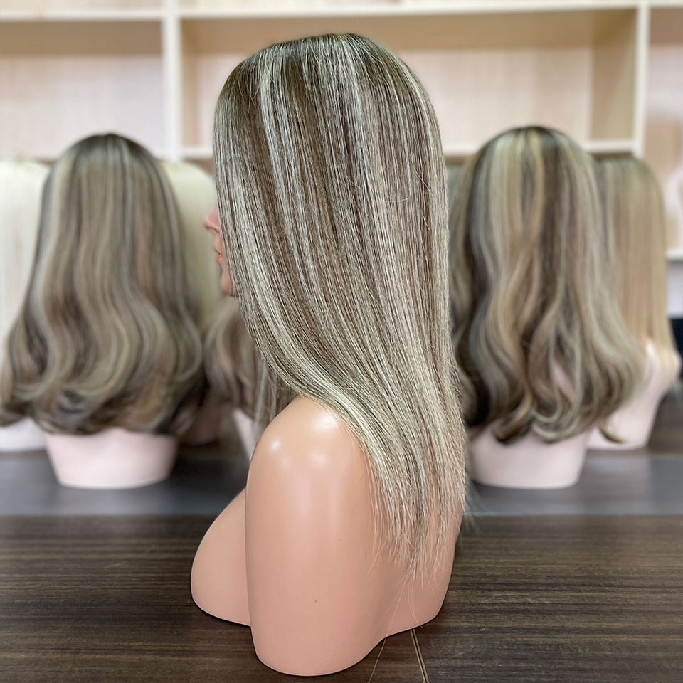 ท็อปเปอร์ผมแท้ยุโรปแบบเรมี่สีบลอนด์สั่งทำพิเศษ รูปทรงวี ขนาด 5x5 นิ้ว ลอนลึก สำหรับผู้หญิง ความหนาแน่น 130% ฐานลูกไม้ PU ติดแฮนด์ไทด์ พร้อมหน้าม้า