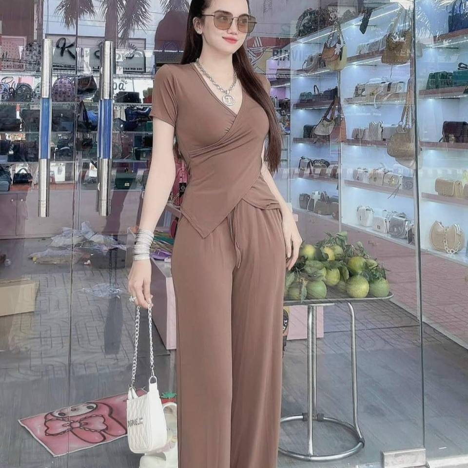 ชุดเสื้อผ้าคอวีสำหรับผู้หญิง ชุดยาว ผลิตจากโรงงาน วัสดุธรรมชาติ บรรจุภัณฑ์แบบกำหนดเอง ผู้ผลิตจากเวียดนาม ชุดยาวสำหรับเด็กผู้หญิง 2 ชิ้น