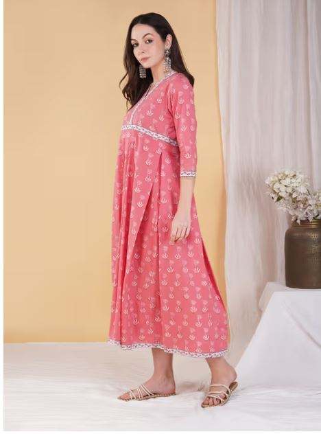 คอวีมีสไตล์ คอกลม แขนยาว พิมพ์ลายดอกไม้ เอวสูง แม็กซี่เดรสยาวสำหรับผู้หญิง ชุดเดรสแขน 3/4 ลำลองหรูหรา