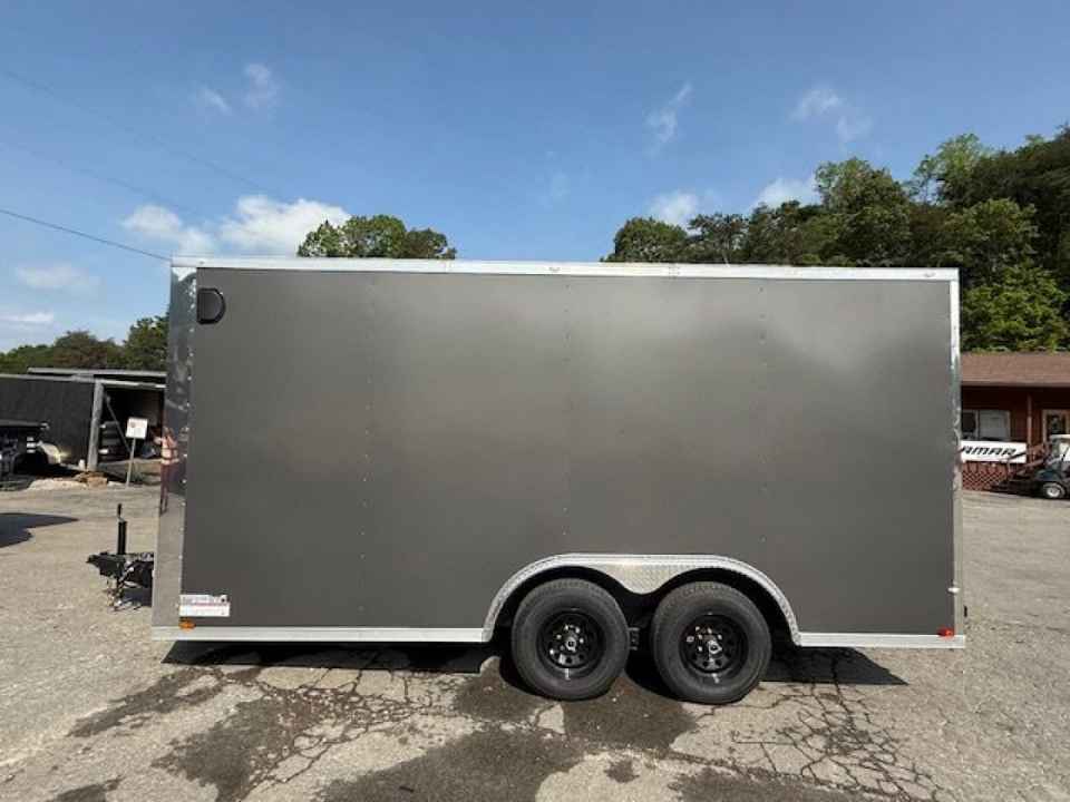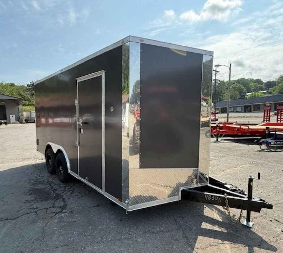 รถพ่วงแบบปิดทรงวี รุ่น Outlaw ขนาด 8.5x16 นิ้ว รับน้ำหนัก 10,000 ปอนด์ สำหรับขนส่งสินค้าหนัก พร้อมช่องเข้าด้านข้าง