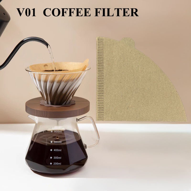 กระดาษกรองกาแฟทรงกรวย V01 ทำจากเยื่อกระดาษธรรมชาติ 40/50 ชิ้น สำหรับชงกาแฟแบบดริป เกรดอาหาร สีขาว ใช้ในบ้าน