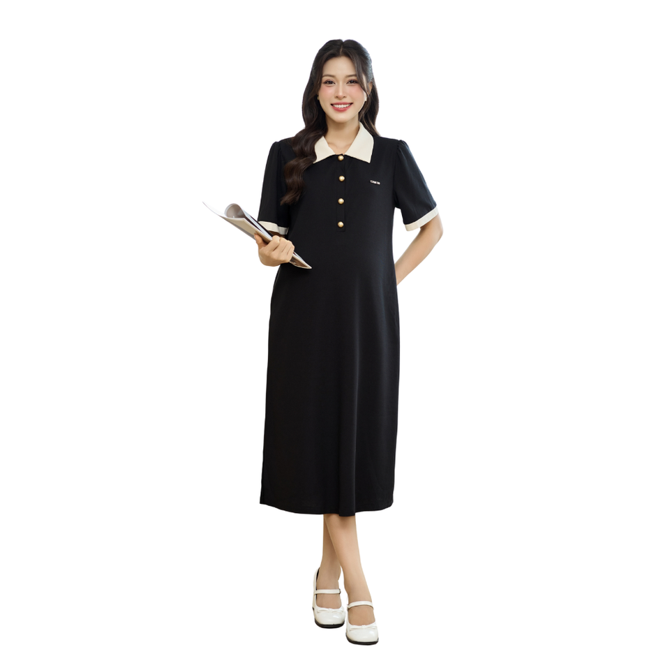 V1448 ชุดเดรสคลุมท้องแขนสั้นทรงหลวมผ่าข้างผ้าเนื้อนุ่มดูดซับเหงื่อสำหรับหญิงตั้งครรภ์