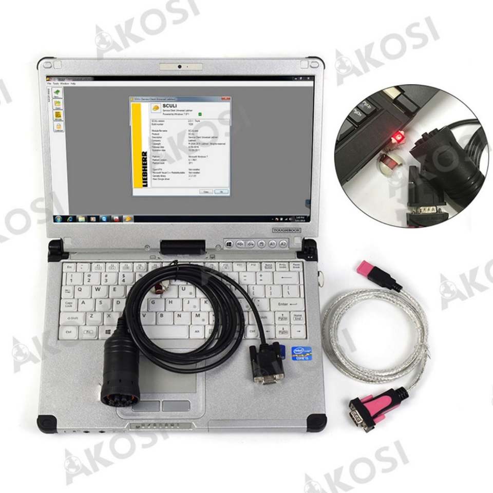 ชุดอุปกรณ์วินิจฉัย Liebherr รุ่น V2.13.3 สำหรับซอฟต์แวร์ Liebherr SCULI พร้อมเครื่องมือวินิจฉัยรถขุดและรถเครน + แล็ปท็อป CFC2