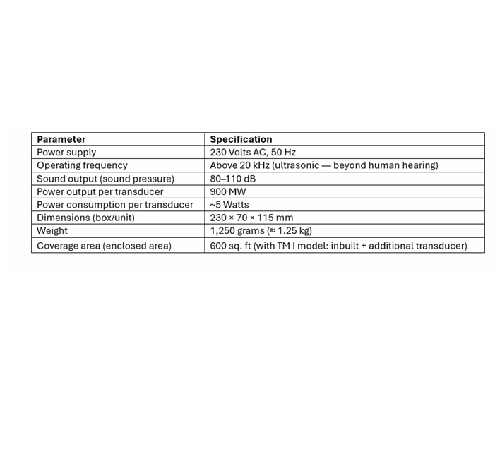 เครื่องไล่แมลงอัลตราโซนิกแบบพกพา V2 Mini Series TM I รุ่นประหยัดพลังงาน (แบบไฟฟ้า) สำหรับสำนักงาน โรงรถ และทางเดิน