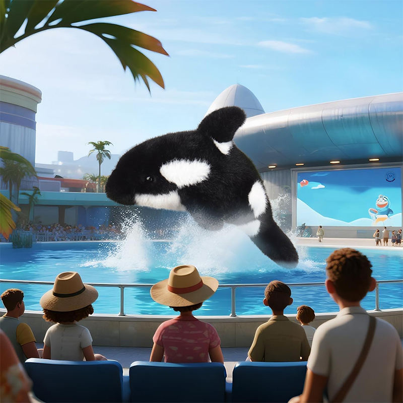 V247ตุ๊กตาวาฬเพชฌฆาตนุ่มนิ่มสุดนุ่มออกแบบได้เองสีดำน่ารักสำหรับเด็กของขวัญวันเกิด