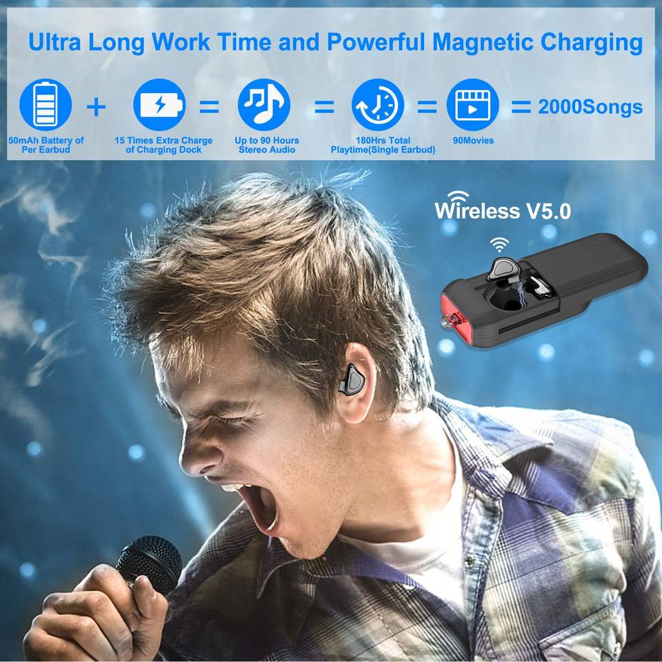V5.0หูฟังสเตอริโอไร้สายที่แท้จริงตัดเสียงรบกวนชุดหูฟัง TWS พร้อมแท่นชาร์จและหูฟังกันน้ำ
