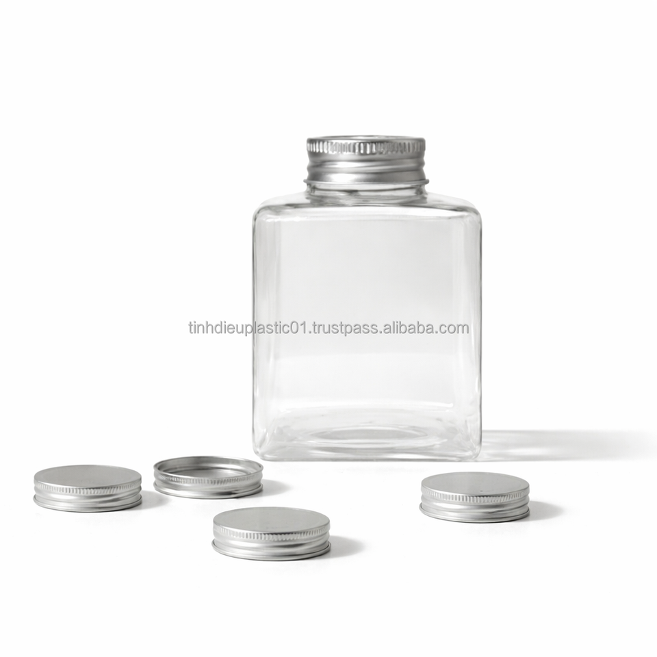 ขวดแก้วใสทรงเหลี่ยม V500-33 ขนาด 500 มล. พร้อมฝาอลูมิเนียม ป้องกันการรั่วซึม บรรจุภัณฑ์ใสสำหรับเครื่องดื่มและซอส